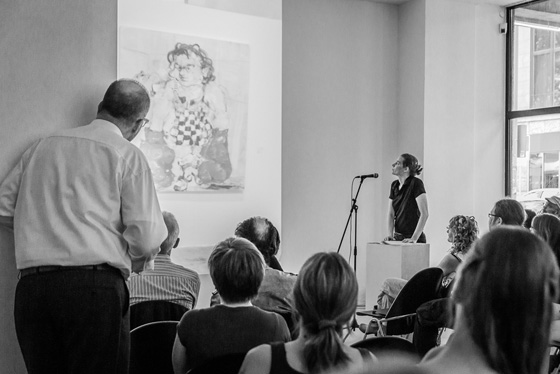Die Arbeiten von Andrea Bender zeigen, oftmals in kolonialem oder barockem Ambiente, ein Figurenkabinett, was bestimmte Sozialstrukturen und Befindlichkeiten des Menschen malerisch vorführt und dabei den Betrachter nicht entlässt. Es blickt aus dem Farbberg heraus, dieser wird zum Psychogramm und verweist, zu gleicher Zeit, auf nichts weiter als auf sich selbst. Zwischen pastoser Malerei, zeichnerischen Spuren und wässrigen Lasuren, läuft die Narration bei Nahsicht buchstäblich ins Leere.