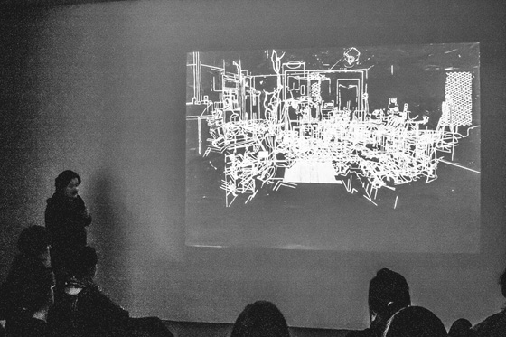 Am Anfang meiner Arbeit steht die Konstruktion eines Objekts. Das Vokabular der geometrischen Abstraktion wird dabei als Ausgangsmaterial benutzt und frei in ein Modell umgesetzt, das zwischen Architektur und Skulptur changiert. Im Laufe der Gestaltung wird das Objekt mit einem Text in Verbindung gebracht und in einen realen Raum eingebunden, weiter in eine Vektorgrafik umgesetzt, inszeniert und fotografiert. Es wird mit verschiedenen Stufen der Realität experimentiert, mit Zwei- und Dreidimensionalität, die Darstellung balanciert immer wieder zwischen perspektivischer Realität und Illusion. Beim künstlerischen Prozess werden zwei gegensätzliche Denkweisen miteinander verbunden: einerseits die Strenge und Rationalität der Konstruktion und Geometrie, anderseits das offene intuitive Wesen der Zeichnung. Der Status der beiden Medien wird dadurch entscheidend verändert.