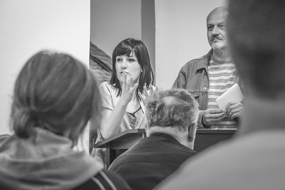 Romy Sauvage spent two months in a guest studio in the Höherweg studios in February and March 2008 where she painted a colourful mural. After two weeks of its existence it is now gone due to a repaint of the wall. What is left of it are photos and the opportunity to meet the artists and talk to her about her new plans and future projects.